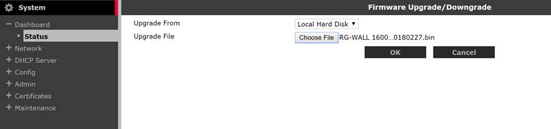 (RG-WALL 1600-M6600 V5.2-R5.14.9605.P6.e2-20180227.bin), and then click OK.